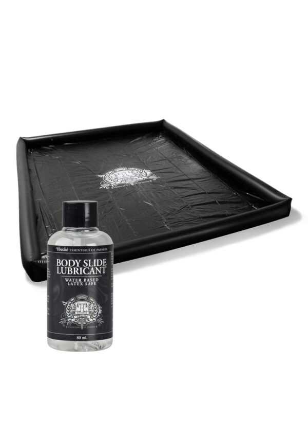 Body SlideDe Body Slide is ontworpen voor reguliere massages en body-to-body massages. De Slide heeft opblaasbare randen zodat je geen troep ervan kan maken. Je kunt het zo vaak gebruiken als je wil want het materiaal is gemaakt van robuust en duurzaam materiaal. Na gebruik is de Body Slide gemakkelijk af te spoelen met water en zeep. Bijgeleverd is een fles met zeer geconcentreerde lubricant. Deze lubricant meng je met water om in totaal 5 liter lubricant te creeren. Breng je liefdes leven in een compleet nieuwe dimensie met de Body Slide van Touche.