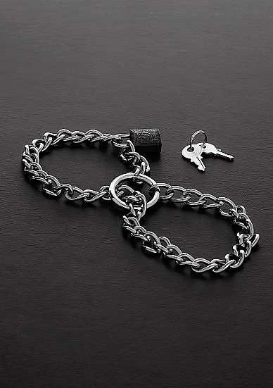 Steel Chain CuffsLeuke simpele kettinghandboeien. Door het kleine uiteinde van de ketting door beide grote ringen te draaien, kunt u twee lussen maken die de polsen (of enkels) nauw omringen. Daarna wordt de ketting beveiligd met behulp van een hangslot.