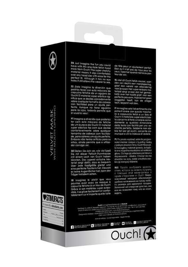 Mask with Mouth OpeningStel je eens voor hoeveel plezier je zou kunnen hebben met dit one-hole fetish hood masker van Ouch! Het super rekbare materiaal betekent dat het comfortabel over elk hoofd past en gemakkelijk past. Hoewel het geen ooggaten heeft, laat het de drager nog steeds zien. Dit masker is perfect voor degenen die geïntrigeerd zijn door gimp maskers, maar nog niet klaar zijn om de hele negen yards te gaan.