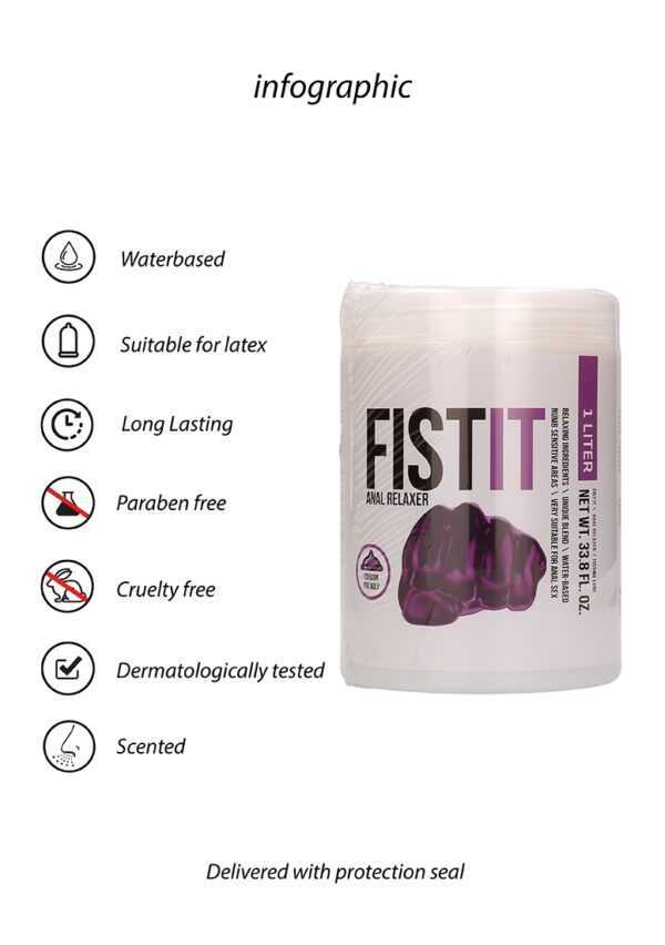 Anal Relaxer – 33.8 fl oz / 1000 mlFist It is een glijmiddel op waterbasis. Geschikt voor gebruik met latex-condooms. Smeer zoveel gel als je wilt op het gewenste lichaamsdeel en herhaal zo vaak je wilt. Buiten het bereik van kleine kinderen bewaren. Koel en donker bewaren.