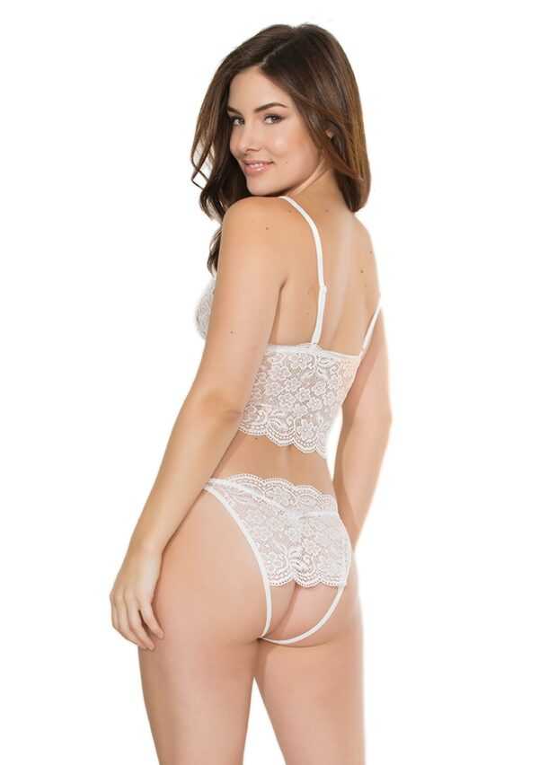Bralette and Crotchless Tights – Plus SizeLange bralette met sexy kruisloze panty. De scallop kant stof is rekbaar. De cups op de bralette hebben strappy details en de panty heeft verstelbare bandjes op de maat, dit maakt het mogelijk om de maat aan te passen. De G-String die onder de panty wordt gedragen is niet inbegrepen.