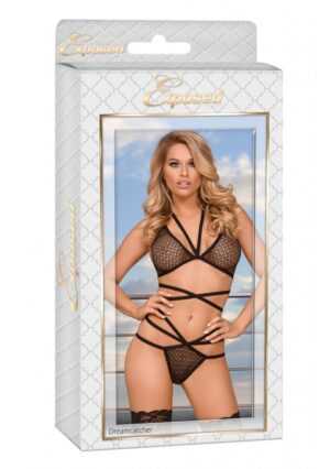 • Strappy Bra. Garter & G-Set w/ Rings – Black – QS