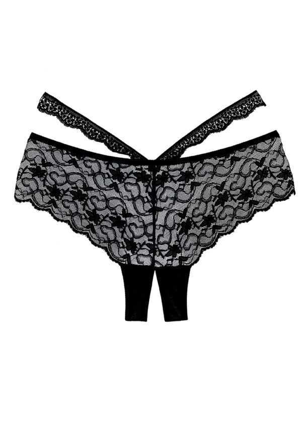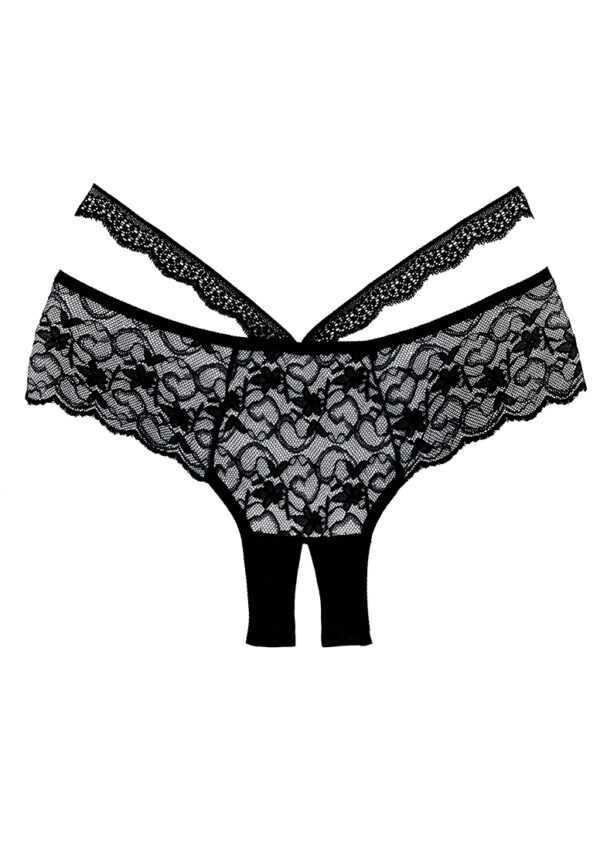Heartbreaker – Panties – One SizeEen wervelwind van gegolfde kant bedekt je heupen en billen in deze weelderige open kruisje jongensslip, met hoge kanten bandjes die schuin omhoog vegen om een zandlopereffect te creëren