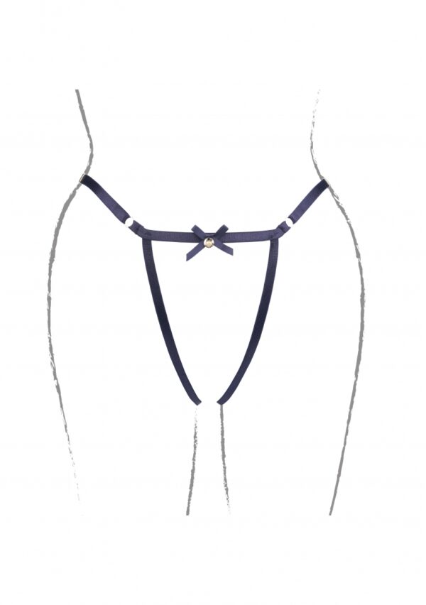 Aimé – Brief with Open Crotch and Buttock, Adjustable Slider and Golden Details – One SizeDe zwarte bandjes zorgen ervoor dat dit broekje de definitie van stoer is. Maar het schattige strikje aan de voorkant voegt wat zoets toe. Wiens hoofd breng jij op hol als je dit draagt?