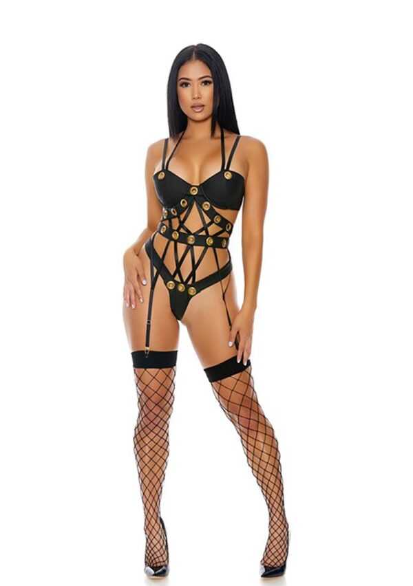Can’t Be Caged – Teddy – XL1 st. Teddy met bandjes en ringetjes, cups met beugels en bevestigde kousenbandjes.