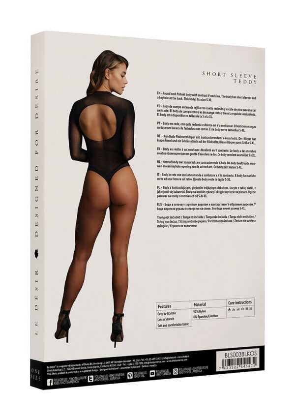 Short Sleeve Teddy – One Size – BlackNetstof body met ronde hals en contrasterende V-hals. De body heeft korte mouwen en een keyhole opening aan de achterkant. De body past maten S-XL. String niet inbegrepen.String niet inbegrepen.