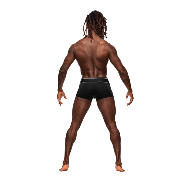 Pouch Short – M – BlackDeze stijl uit de Male Power Modal Rib-collectie bestaat uit een Pouch Short met een 2,5 inch brede, zachte, elastische tailleband met merklogo, een contour pouch en pijpen tot halverwege de dij.