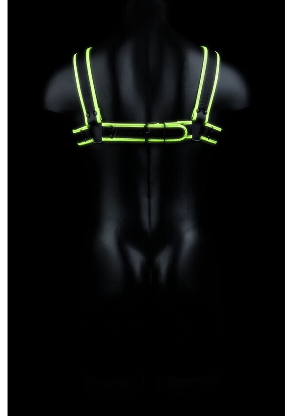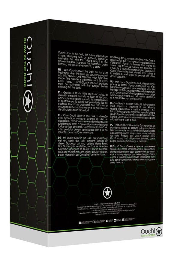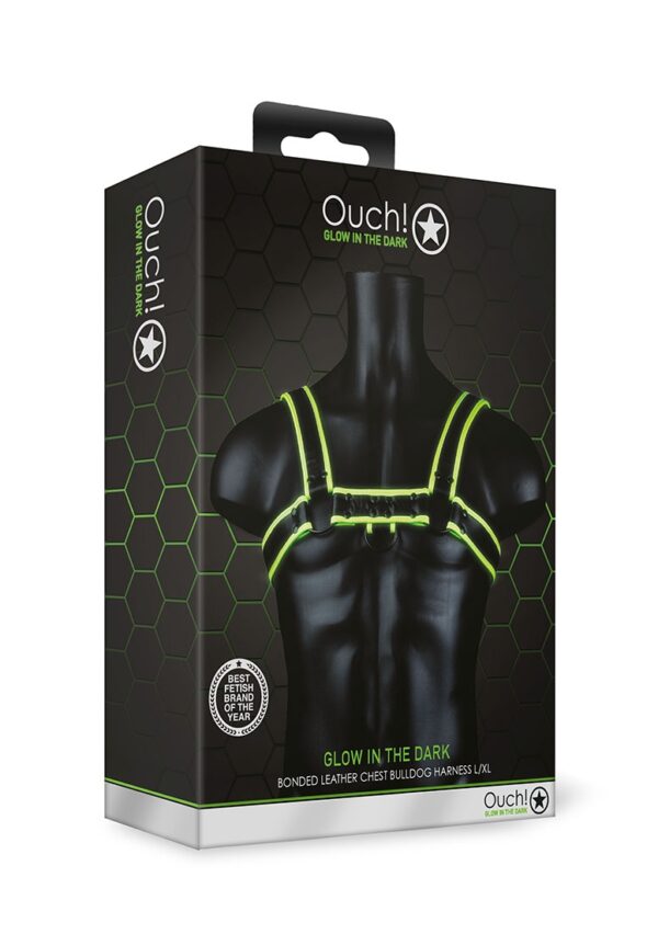 Chest Bulldog Harness – Glow in the Dark – L/XLOuch! Glow in the Dark, de toekomst van bondage is hier. Het design heeft het autentiek bondage uiterlijk, maar brengt licht in het duister door zijn fluoresecrende groene details waardoor alles een feest wordt. Riem jezelf vast in dit harnas en accentueer jou mannelijke vorm. Het harnas is verstelbaar zodat het bij elk lichaamstype past. Ouch! Glow-In-The-Dark producten moeten worden geactiveerd met het zonlicht voordat je er in het donker van kunt genieten.