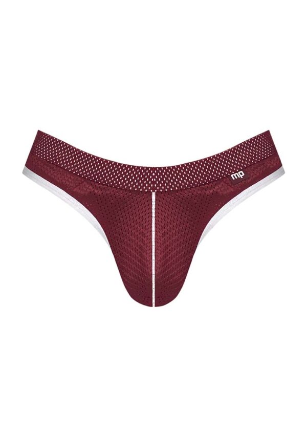 | Omschrijving Beslist | Sport Mesh Thong – Burgundy – L/XL – From the Sport Mesh collection by Male Power, the Sport Thong, features a stay put fabric covered waistband with a logod MP tag. Plush elastane sporty striping highlights the front, and one inch rear t-back. |