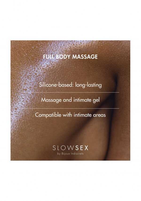 Slow Sex – Full Body Massage Oil – 1.7 fl oz / 50 mlHuid op huid massage overal en overal met deze gel op siliconenbasis. Ja, OVERAL. Je lichaam is je massagetool, gebruik je borsten of billen om over het hele lichaam van je partner te glijden. Giet en masseer, zelfs onder water!Silicone Zijdeachtig effect Glijdende inhoudVolledige lichaamsmassage. (50ml)
