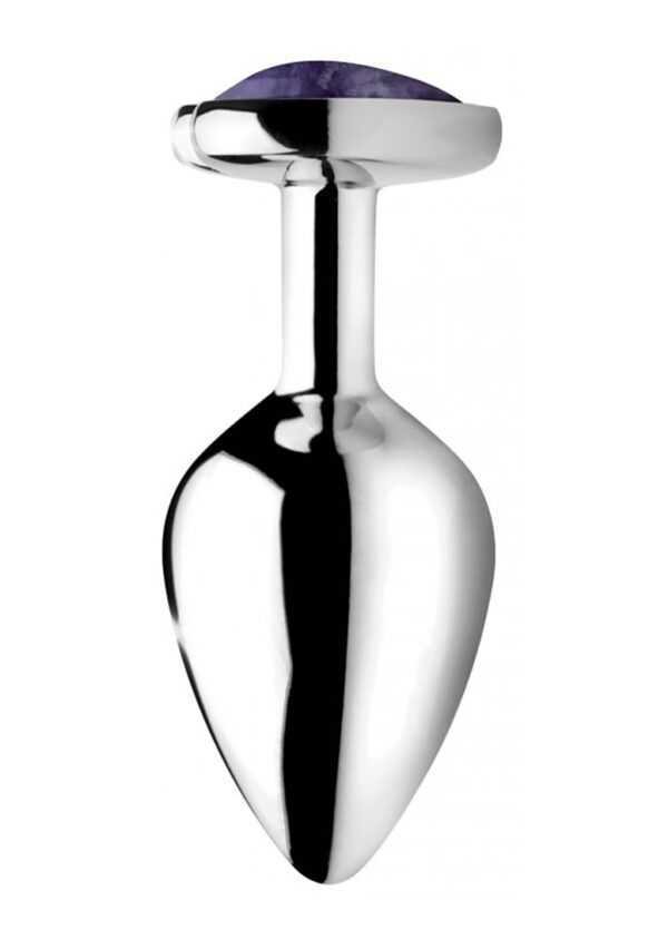 Amethyst Heart – Butt Plug – MediumVersier je achterste met de romantische ontspannende energie van deze echte hartvormige amethist edelsteen butt plug – breng je humeur in evenwicht en ruim negatieve gedachten op terwijl je je behoefte aan backdoor fill vervult! De gladde en zware textuur biedt een diep bevredigende massa van hardheid voor je kont om op te knijpen, perfect voor gebruik op jezelf of als een warming-up speeltje voor verder anaal plezier met een minnaar. Gemaakt van een lichaamsveilige aluminiumlegering die gemakkelijk schoon te maken is en compatibel is met de meeste glijmiddelen, zodat je met je favoriete gladde spullen kunt spelen. Afmetingen: Totale lengte 3,3 inch, inbrengbare lengte 2,7 inch, diameter op het breedste punt 1,3 inch Materialen: Aluminiumlegering, Amethist Kleur: Paars, metaal Echte hartvormige amethist edelsteen: Geeft een kalmerende, rustgevende energie aan je kont De hartvormige amethist edelsteen brengt je stemming in evenwicht en helpt negatieve gedachten te verdrijven terwijl je speelt Comfortabel verzwaard: Voeg een neerwaartse trek toe aan je gat voor extra stimulatie en plezier dankzij de zware aard van deze metalen buttplugs Nikkelvrije aluminiumlegering: Het aluminiumlegering materiaal zorgt voor een heerlijk harde en gladde massa voor je kont om in te knijpen Compatibel met de meeste glijmiddelen Geweldig voor temperatuurspel: Verwarm of koel deze edelsteen buttplug in een kom met water om een extra laag sensatie toe te voegen terwijl je speelt Perfect voor ervaren buttplug gebruikers die op zoek zijn naar een nieuwe manier om te spelen