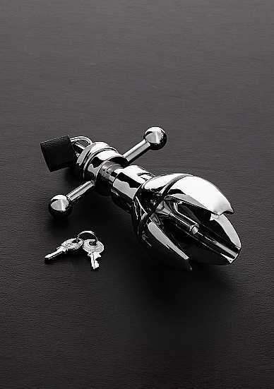 The Ultimate AsslockDeze Anal Lock creeert een nieuwe dimensie in anale spelletjes. Wanneer het speeltje is ingebracht, kan de gebruiker voelen dat het staal elke centimeter van de holte passeert. Eenmaal volledig ingebracht, zorgt een simpele druk op het achterste deel van de plug ervoor dat het ingebrachte deel uitzet. De Ultimate Asslock is te vergrendelen met het meegeleverde hangslot. Dit is een serieus apparaat voor serieuze spelers.