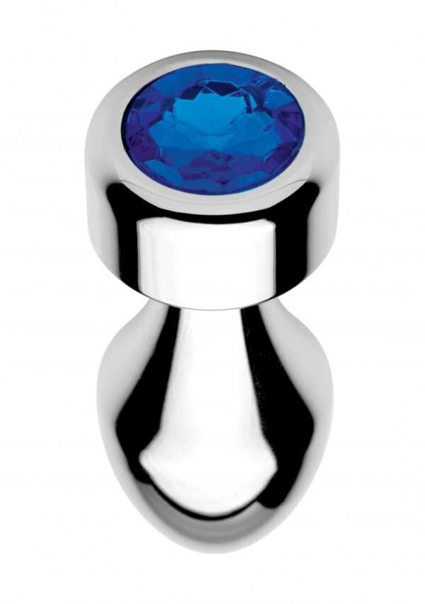 Blue Gemstone – Weighted Base Aluminum Plug – SmallKinky, zilverkleurige buttplug met blauw kristal. Dit speeltje is niet alleen een lust voor het oog, maar vervult ook al je erotische verwachtingen. De zilverkleurige plug is gemaakt van glad aluminium en heeft een blauw kristal op de platte voet. Als je de plug erin hebt, schittert de diamant tussen je billen. De buttplug is perfect om de hele dag te dragen en bij elke beweging geniet je van de intense stimulatie. Door zijn afmetingen is hij minder geschikt voor beginners.