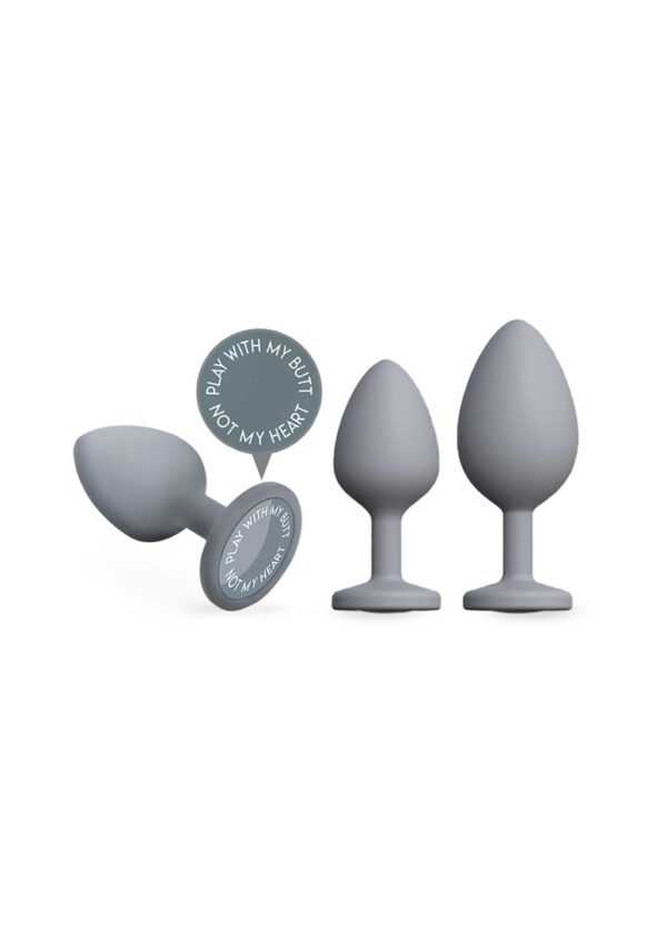 Anal Training SetVul jezelf met deze set van 3 siliconen spade buttplugs in geleidelijk toenemende maten! Ideaal voor het introduceren van anaal spel of het voorbereiden van het lichaam van jou of je partner voor penetratie of voor groter speelgoed, deze A-Play pluggen zijn strak en volledig lichaamsveilig.