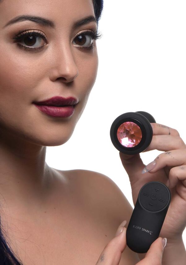 28X Silicone Vibrating Pink Gem Anal Plug with Remote – Small