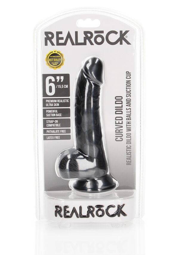 Curved Realistic Dildo with Balls and Suction Cup – 6 / 15,5 cmRealRock is ontworpen voor jouw ultieme genot. Een stevige en zacht aanvoelende dildo, met een natuurlijk uiterlijk en precies de juiste maat. Dit alles in combinatie met de realistische aders op de schacht voor extra stimulatie van binnen, zorgen ervoor dat je deze dildo niet snel zult vergeten in je nachtkastje. Deze realistische dildo is licht gebogen, wat hem ideaal maakt voor g-spot stimulatie. Geniet van dit model van binnen en van buiten! Door details het scrotum en goedgevormde eikel is het gebruik van deze dildo levensecht. De zuignap maakt stevig handsfree gebruik mogelijk (op een gladde ondergrond) en biedt tevens de mogelijkheid om deze RealRock in een harnas te gebruiken. Met al deze opties zul je een explosief orgasme hebben dat aan niets zal ontbreken.