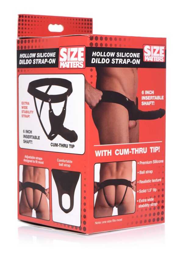 SM – Hollow Silicone Dildo Strap-OnStrap-on en verbeter direct je lid met dit holle dildo-harnas! Deze strap-on-set verbreedt en verlengt je schacht in een eenvoudig te gebruiken pakket. De extra brede stabiliteitsband houdt de dildo op zijn plaats terwijl je je geliefde draait en stoot, terwijl de cum through-top je in staat stelt om te klaarkomen waar je maar wilt. Deze holle dildo past strak om je pik en geeft je de extra omvang en lengte die je verlangt. De opening van de balband past zich aan je balzak aan en omhelst deze voor een comfortabelere pasvorm en voegt wat beperking toe aan de zak voor nog gevoeliger genot. De realistische aderen en stevige top zorgen voor een authentieke uitstraling en gevoel waar jij en je geliefde van kunnen genieten. De premium, ftalaatvrije siliconen zijn zijdezacht en veilig voor het lichaam, zodat je je kunt vastmaken en zorgeloos naar beneden kunt gaan. Afmetingen: Totale lengte 10,1 inch, Schachtinbrengbare lengte 6 inch, holle schachtdiepte 4,5 inch, schachtopeningsdiameter 1,6 inch, breedste inbrengbare diameter, binnendiameter balharnas 2,7 inch Materialen: Ftalaatvrije siliconen en nylon Kleur: Zwart