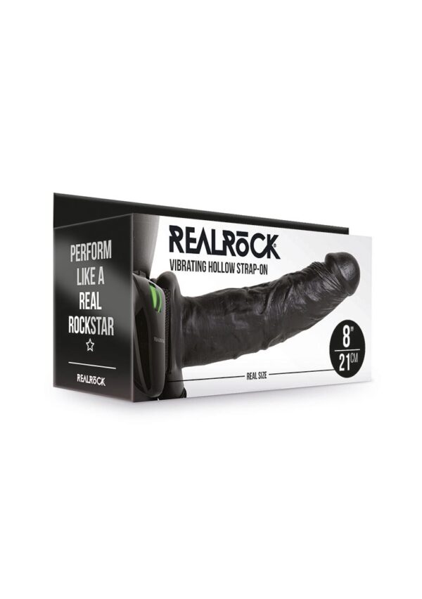Vibrating Hollow Strap-On without Balls – 8 / 20,5 cmWees de RealRock-ster die je altijd al wilde zijn met deze vibrerende RealRock Hollow Strap-On. Dit product geeft je extra omvang en lengte, helpt je het langer vol te houden, vermindert vroegtijdige ejaculatie, helpt je nog beter te presteren zelfs als je erectieproblemen hebt zodat je je partner nooit meer teleurstelt. Deze Strap – On is verstelbaar waardoor het past bij elk lichaamstype. De band is comfortabel en beweegt niet als jij je beste bewegingen laat zien. Dit model heeft een multi-speed vibrator die jou op alle juiste plekken plezier geeft. De afstandsbediening kan vastgesklipt worden aan de band, zodat jij je geen zorgen hoeft te maken waar je hem laat (hands-free). De dildo van deze Strap-On voelt en ziet er realistisch uit, wat resulteert in ervaring die niet van echt te onderscheiden is. Dus, riemen vast en wees klaar om los te gaan!