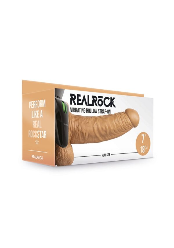 Vibrating Hollow Strap-On with Balls – 7 / 18 cmWees de RealRock-ster die je altijd al wilde zijn met deze vibrerende RealRock Hollow Strap-On met ballen. Dit product geeft je extra omvang en lengte, helpt je het langer vol te houden, vermindert vroegtijdige ejaculatie, helpt je nog beter te presteren zelfs als je erectieproblemen hebt zodat je je partner nooit meer teleurstelt. Deze Strap – On is verstelbaar waardoor het past bij elk lichaamstype. De band is comfortabel en beweegt niet als jij je beste moves laat zien. Dit model heeft een multi-speed vibrator die jou op alle juiste plekken plezier geeft. De afstandsbediening kan vastgesklipt worden aan de band, zodat jij je geen zorgen hoeft te maken waar je hem laat (hands-free). De dildo van deze Strap-On voelt en ziet er realistisch uit, wat resulteert in ervaring die niet van echt te onderscheiden is. Dus, riemen vast en wees klaar om los te gaan!