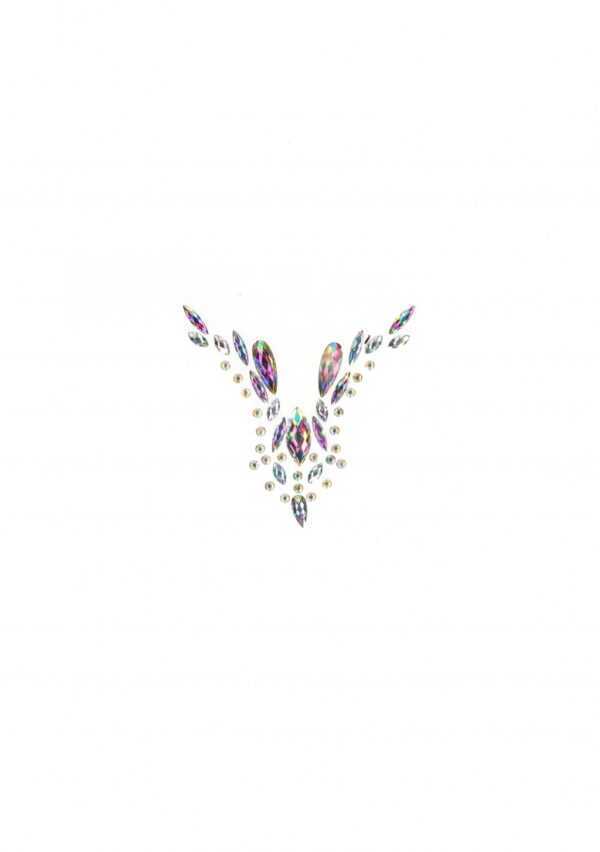 Dazzling Deep-V Cleavage Bling StickerDeze bling stickers geven elke outfit direct glamour. Zonder outfit kan natuurlijk ook. Laat je mooie lichaam zien door een vleugje pracht toe te voegen en schitter als een diamant! Deze Bling Sticker is ontworpen om tussen en rond je decollete te dragen.