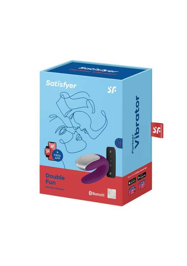 Double Fun – Partner Vibrator – VioletProductinformatie Double FunOnze Double Fun stimuleert beide partners krachtig tijdens de seks. De U-vorm is zowel van binnen als van buiten passend en zorgt voor een verleidelijk gevoel voor de clitoris, G-spot en penis. Dankzij de app is dit hightech speeltje verbeterd met remote-play en meer!Wat kan de Satisfyer Double Fun-vibrator voor koppels doen? De Satisfyer Double Fun zal je liefdesleven verrijken met krachtige vibraties die jullie beiden sensueel stimuleren. De klassieke U-vormige vibrator voor koppels wordt gedragen tijdens het vrijen en stimuleert met zijn inbrengbare schacht zowel de hele penis als de G-spot. De tweede motor is verborgen aan het andere uiteinde van de koppelvibrator en stimuleert tegelijkertijd de clitoris. De koppelvibrator is gemaakt van lichaamsvriendelijke siliconen, die bijzonder zacht aanvoelt op de huid. Je plezier samen kan ook onder de douche of in bad doorgaan: dankzij de waterdichte (IPX7) afwerking is de Satisfyer Double Fun de ideale metgezel voor nat en wild plezier. Mocht je toestel ooit zonder stoom komen te zitten, dan laad je de ingebouwde batterijen weer op met de meegeleverde USB-oplaadkabel. de bediening en app-bedieningHet is ook intuitief te bedienen: de verschillende vibratieprogramma’s kunnen worden bediend via het bedieningspaneel op de koppelvibrator zelf, via de meegeleverde draadloze afstandsbediening of via de Satisfyer Connect-app. Je kunt nog meer upgrades voor je vrijen ontdekken met de app: je kunt je eigen vibratieprogramma’s maken, de Satisfyer van je partner besturen of je account koppelen aan Spotify en meer – er valt veel te ontdekken! De app is gratis en beschikbaar voor Android, iOS en Apple Watches.