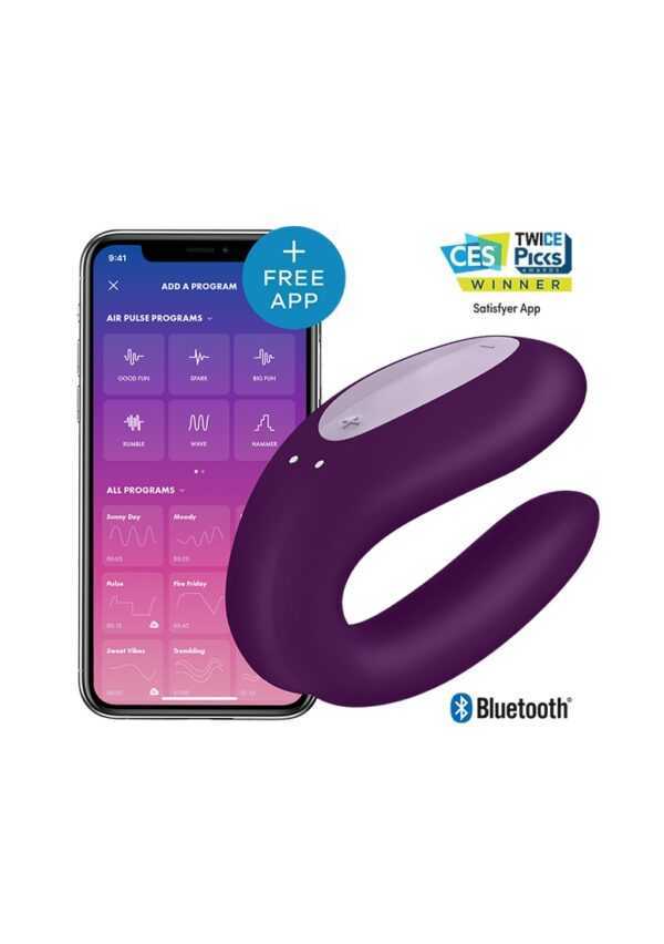 Double Joy – Partner Vibrator – VioletOnze Double Joy stimuleert beide partners krachtig tijdens de seks. De U-vorm is zowel van binnen als van buiten passend en zorgt voor een verleidelijk gevoel voor de clitoris, G-spot en penis. Dankzij de app is dit hightech speelgoed verbeterd met remote-play en meer!