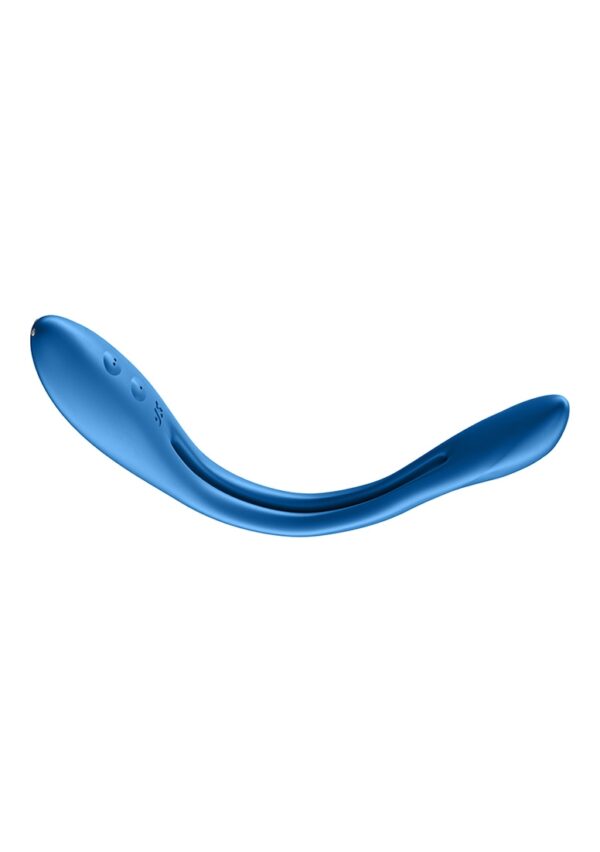 | Omschrijving Beslist | Elastic Game – Dark Blue – The multifunction vibrator Satisfyer Elastic Game takes variety to a new level: You can use it straight, bend it, pull it apart, lay it on, insert it – and anything else that comes to mind. Use it as a cock ring or for nipple stimulation, or bend it into the U-shape of a classic partner vibrator: Anything goes with the Elastic Game. The ribbed end intensifies external stimulation, while the tapered, insertable end provides an accurate G-spot massage. The Elastic Game is ideal for beginners thanks to its narrower tip. Anyone interested in trying anal stimulation and a pleasurable prostate massage is also well advised with the Elastic Game: Let yourself go and enjoy the versatility of this Satisfyer. It has two motors that can be controlled independently of one another: Each motor stimulates you with 7 vibration rhythms and 3 intensities. |