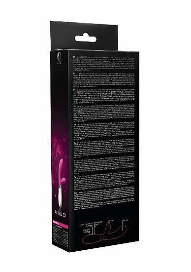 Achilles – Rechargeable VibratorDe ACHILLES heeft, in dit geval, zijn sterkste punt in de hiel van de vibrator. De robuuste uitvoeringvan de clitoris stimulator maakt dat u naar adem zult snakken als u uw hoogste O laat horen.Gemaakt van hoogwaardig silicone en ABS. Wordt geleverd met 2 extra sterke F1 motoren met eentoerental tot 5.200 omwmin en 15.000 omwmin in de gebogen punt voor perfecte G-spot stimulatie!De 10 verschillende snelheidsmodi zorgen ervoor dat er altijd voor elk wat wils isen bij minder dan 60dB is niemand anders op de hoogte van uw geheime rendez-vous. Dit prachtigespeelgoed is oplaadbaar via de meegeleverde USB-kabel. 30 minuten opladen geeft u 60 minutenongebreideld verzadigend speelplezier! De ACHILLES heeft een lengte van 21 cm en een diametervan 3,5 cm.