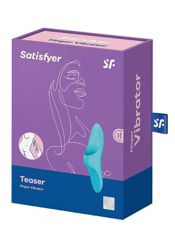 Teaser – Finger Vibrator – Light BlueProductinformatie TeaserDe Satisfyer Teaser is perfect voor veelzijdige stimulatie van alle erogene zones zoals de clitoris en tepels: De vingervibrator is zeer eenvoudig en intuitief in gebruik dankzij de flexibele opening.Erotische avonturen met de Satisfyer TeaserDe Satisfyer Teaser is de perfecte metgezel voor nieuwsgierige mensen. Zijn veelzijdigheid biedt zowel beginners als ervaren plezierzoekers altijd nieuwe ontdekkingsmogelijkheden. Met behulp van de praktische riem kan de vingervibrator gemakkelijk op de hand worden getrokken. Als het eenmaal aan is, zijn de opties eindeloos: gebruik het voor clitorale stimulatie of voor het prikkelen van andere erogene zones zoals de tepels of het perineum. Het werkt geweldig zowel in solospel als met een partner.Ondanks zijn handzame formaat is het een echte krachtpatser: vermomd als een onschuldige vingervibrator, zal hij je snel op gang brengen met diepe, krachtige vibraties met 12 intensiteiten.Satisfyer Teaser: Waterdichte vinger vibrator gemaakt van delicate siliconenDe medische siliconen waaruit de Satisfyer Teaser is gemaakt, zorgt voor sensationele stimulatie terwijl de vibratieritmes varieren van zacht tot krachtig intens. De vingervibrator is natuurlijk waterdicht (IPX7) dus hij kan onder de douche of in bad gebruikt worden en is ook makkelijk schoon te maken. In tegenstelling tot de meeste andere vingervibrators en instapproducten, is de Satisfyer Teaser uitgerust met geintegreerde batterijen die kunnen worden opgeladen met de meegeleverde USB-oplaadkabel.