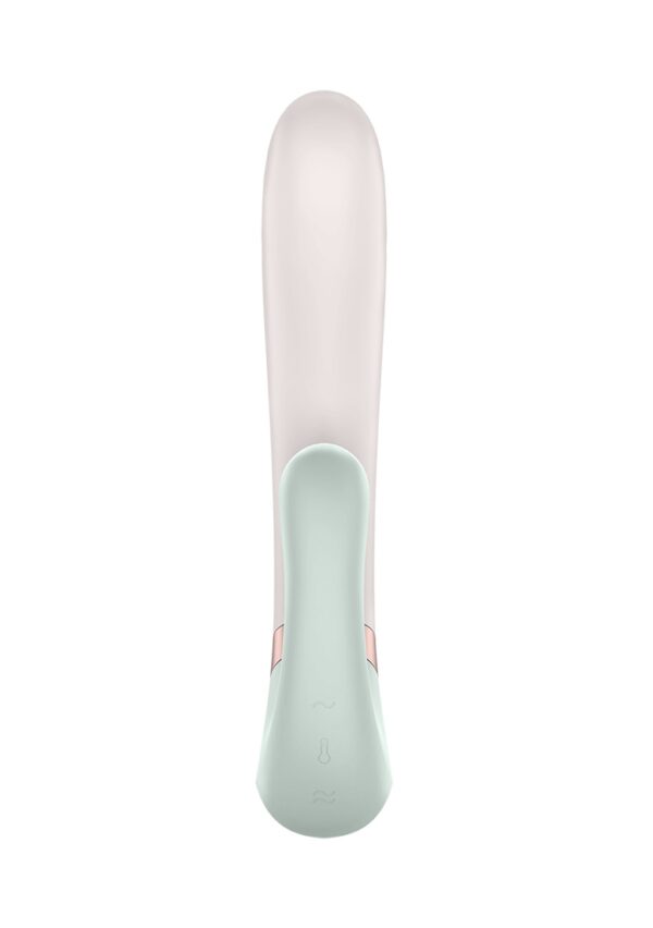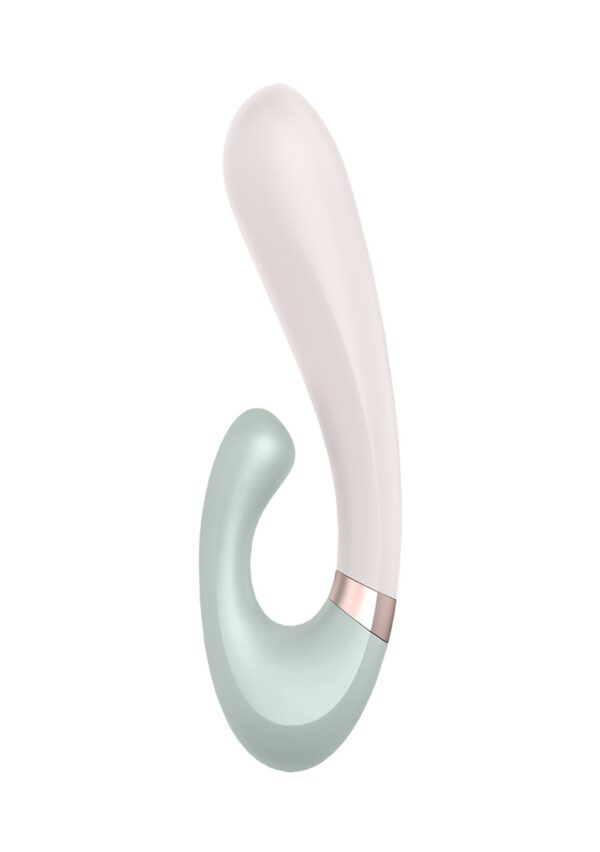 Heat Wave – Warming Vibrator and Clitoral Stimulator – MintDe Satisfyer Heat Wave is een vibrator die je passie op verschillende manieren aanwakkert: in zijn lange, licht volumineuze schacht en zijn clitorisstimulator zit een krachtige motor die je hete plekken verwent met diepe trillingen. Zijn gebogen vorm zorgt niet alleen voor een intensieve, diepe G-spot stimulatie, maar ook voor een bijzonder grote clitorisstimulatie – en de rabbit laat ook andere erogene zones zoals je schaamlippen trillen. Bovendien vormt zijn vorm een borgring, zodat hij zelfs in wildere momenten niet van je zijde wijkt. Ook met de verwarmingsfunctie van de Satisfyer Heat Wave wordt hij bijzonder heet: zijn schacht kan worden verwarmd tot 39 graden, waardoor hij je genotsgevoel en je vermogen om een orgasme te krijgen vergroot en je ook een gevoel van lichaamswarmte geeft. Zowel de motoren als de verwarmingsfunctie kunnen onafhankelijk van elkaar worden aangestuurd.